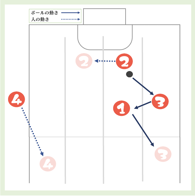 5)④が①へパス、①は④へリターン(※やらなくても良い)